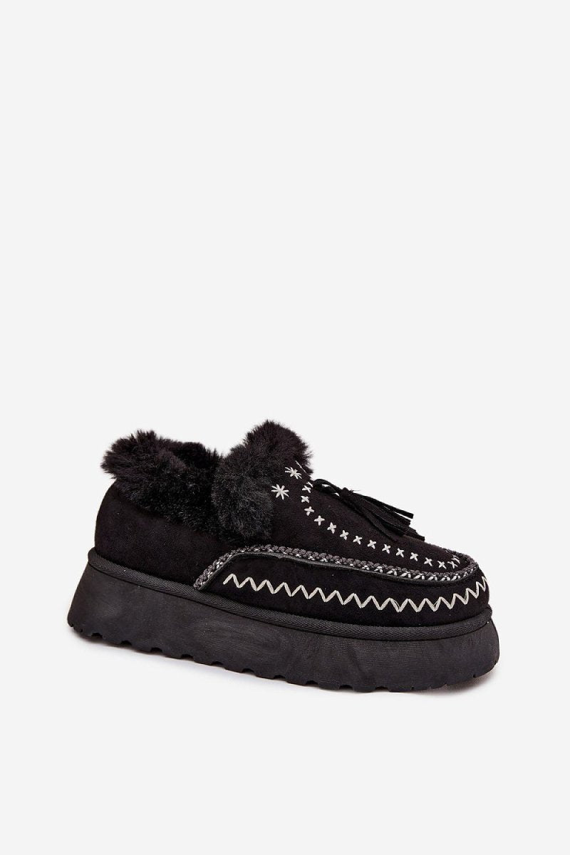 Ladies' snow boots made of eco-suede are a fashionable and functional proposition for winter days. The model set on a platform provides comfort and excellent insulation from the cold ground. The shoes are decorated with fancy stitching, fur, and fringes, giving them an original and stylish character. It is the perfect choice for women who appreciate warmth, comfort, and a fashionable look, they will work great both during walks and in everyday winter stylings.